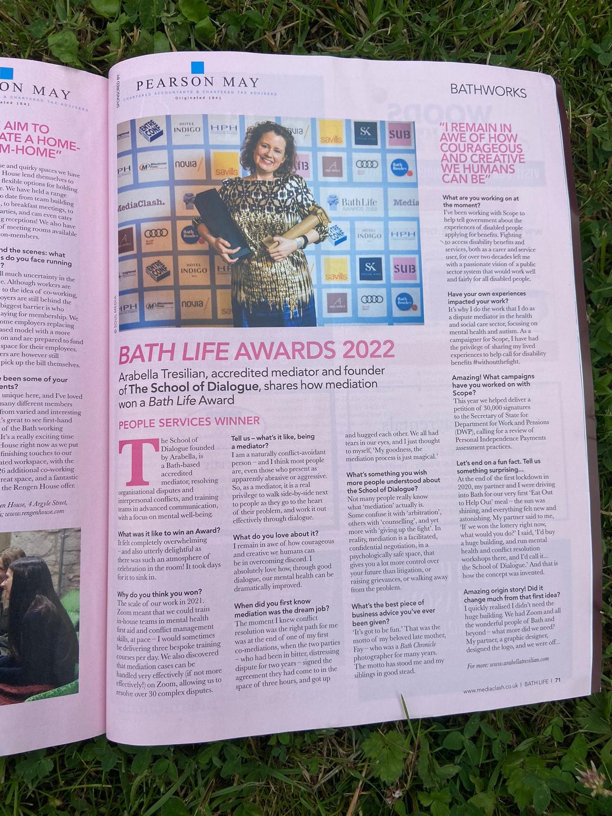 Arabella Tresilian, accredited mediator and founder of The School of Dialogue, shares how mediation won a Bath Life Award